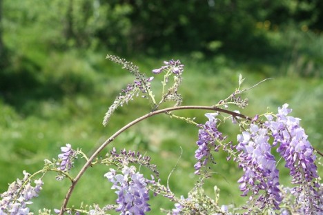 f. Glicinia (Wisteria sinensis). Trepadora de la familia Leguminosae (Fabaceae) que da racimos malvas, o blancos, que caen con gracia de unas ramas que también se curvan y que parten de una cepa que se retuerce con los años mientras se aferra al hierro o al poste o al rodrigón que la sostiene para erguirse con la forma de un árbol que da flores y luego hojas compuestas, de un verde limpio y claro, otorgando al suelo o al agua una de las más bellas sombras que pueden darse, fresca y luminosa al mismo tiempo, y fragante de flores en primavera, casi siempre tras la primera luna llena de primavera, por Pascua. Monet retrató las glicinias sobre su estanque en Giverny.